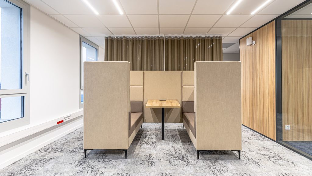 • Adapter l’acoustique des espaces : Box et cabine acoustique, panneaux absorbants, cloisons modulables et revêtements adaptés pour réduire les bruits parasites.